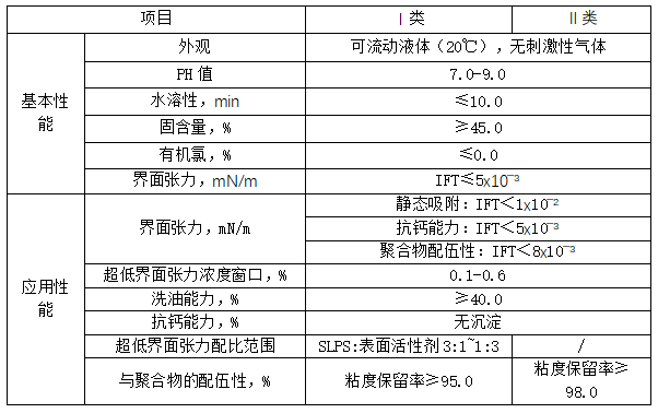 本產品提高采收率,在具體油藏條件下,可以降低油水界面張力的方法使毛細管數增加3~4個數量級。一般原油、水界面張力在20~30mN/m范圍內,使用適當的表面活性劑體系,界面張力可以降到超低值(10-3mN/m數量級)從而達到去油的要求?梢钥闯觯徒缑鎻埩梢詷O大地提高毛細管數。換句話說,如油水界面張力是油珠通過沙粒間狹窄通道時,阻止油珠變形的主要因素,那么降低界面張力就可減少變形的阻力,使原油可以在通常的注水壓差下被驅出。另外,界面張力的降低可使巖石由油潤濕性變為水潤濕,減少巖石對原有的束縛力,使油滴更易啟動,可見超低界面張力時表面活性劑的驅油機理之一、本產品具有抗鹽、抗堿性能,可以減少地層中堿度、礦化度對復合驅油體系的影響,使三元復合驅油體系維持穩定。它能夠使復合驅油體系從注入井到采油井的地層進過程中保持較高的粘度,達到較好的驅油效果。