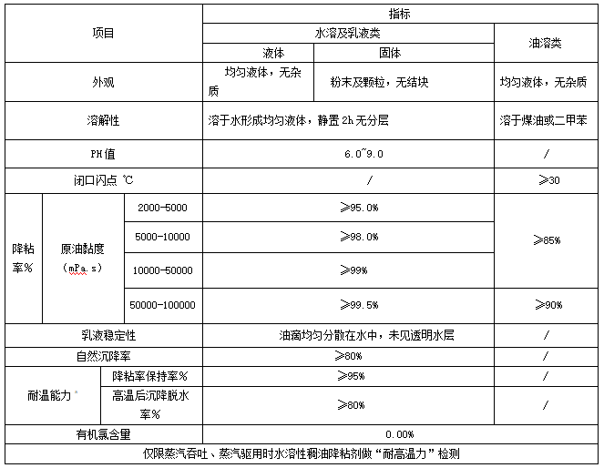 一、產品簡介 該化學助劑為表面活性劑。通過降低油水界面張力,使地層中的稠油從油包水的乳化狀態轉變為以水為外向的乳化狀態,使稠油粘度大幅度降低,采收率提高。二、技術要求